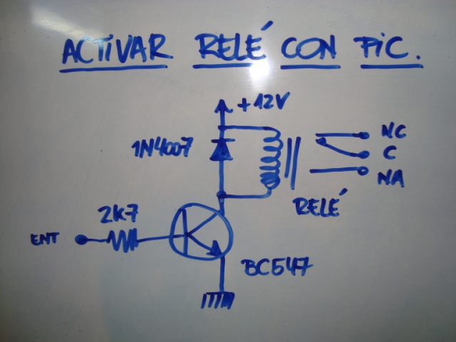 Simplemente eso. Un pequeño circuito para manejar cargas de potencia utilizando un microcontrolador PIC. Se podría mejorar agregando un LED testigo o un optoacoplador para aislar el microcontrolador, pero la idea fue hacer algo simple y que funcione!!!